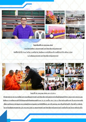 จดพธไหวเจาท ทําบญ ไหวคร บายศรสขวญ โดยมคณาจารยนกศกษาเขารวมพธประจําปการศกษา 2568