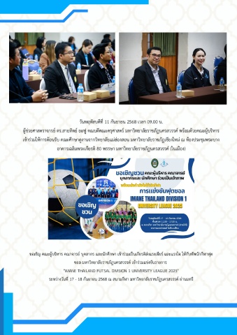 ขอเชญ คณะผบรหาร คณาจารย บคลากร และนกศกษา เขารวมเปนเกยรตสงแรงเชยร และแรงใจ ใหกบทัพนักกฬาฟต